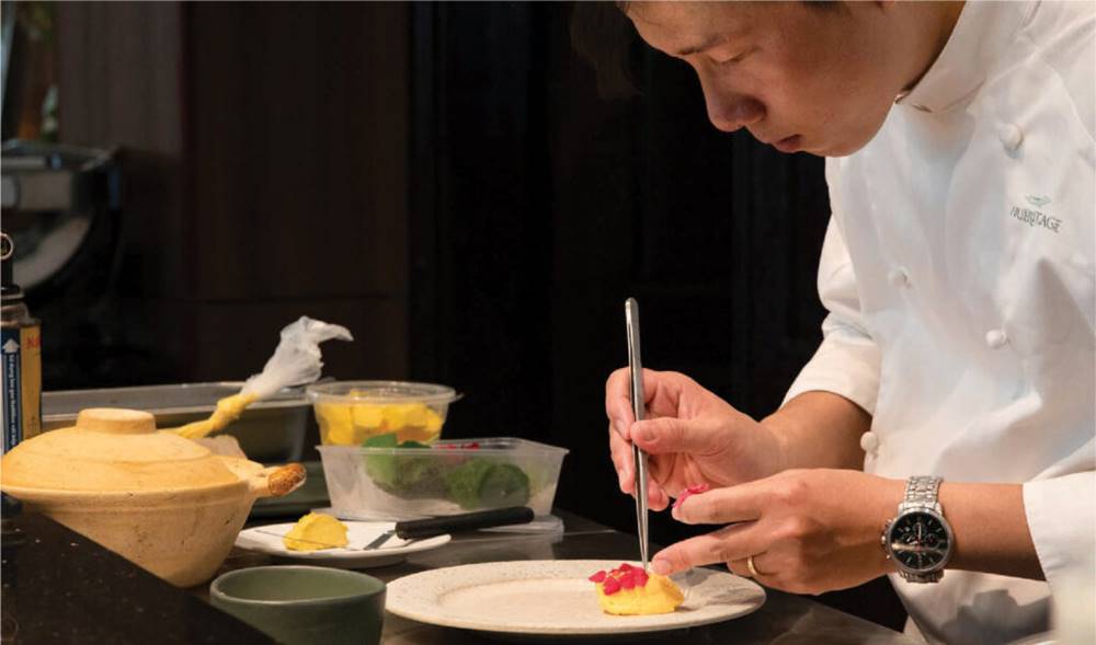 Le voyage commence par une cérémonie traditionnelle du thé impérial, un rituel d’accueil qui évoque les anciennes coutumes royales et prépare les sens à l’expérience culinaire à venir.
